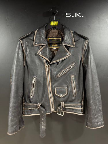 1990s Vintage UNIK Leather Collections Distressed Faded Leather Motorcycle Jacket 42