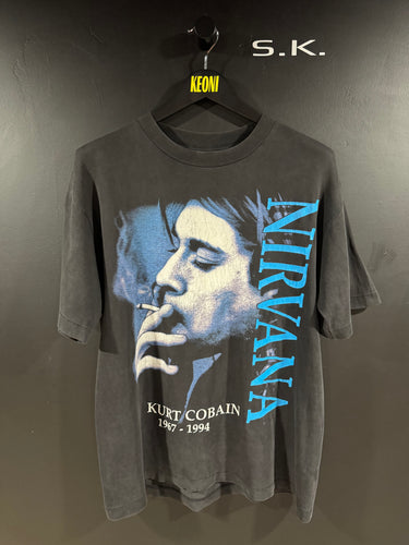 1990s Vintage Nirvana Kurt Cobain Memorial Single Stitch Faded Band Tee XL