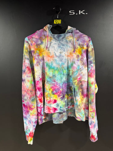 2000s Y2K Vintage Champion Reverse Weave Elevated Atelier Custom Hand-Dyed Distressed Cropped Hoodie XL