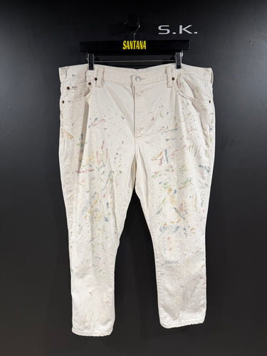 2010s Vintage Polo Ralph Lauren Paint Splatter Cream Wide Cropped Denim Jeans